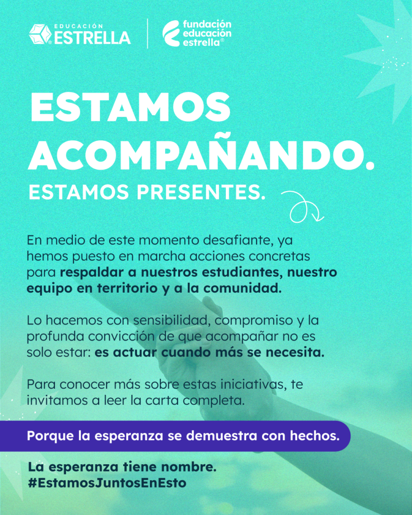 En Educación Estrella® sentimos propio el impacto de esta emergencia invernal en Colombia. Por eso, junto a nuestra fundación empresarial, la Fundación Educación Estrella® (fe²), activamos un plan de acompañamiento para estudiantes afectados, convencidos de que la educación debe mantenerse firme incluso en los momentos más desafiantes.
